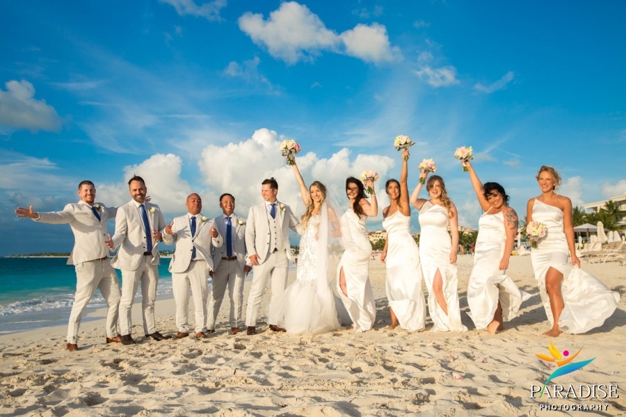 They held their ceremony on the beach in front of Seven Stars Resort, then celebrated with a fabulous glittery reception at the resort’s west deck.