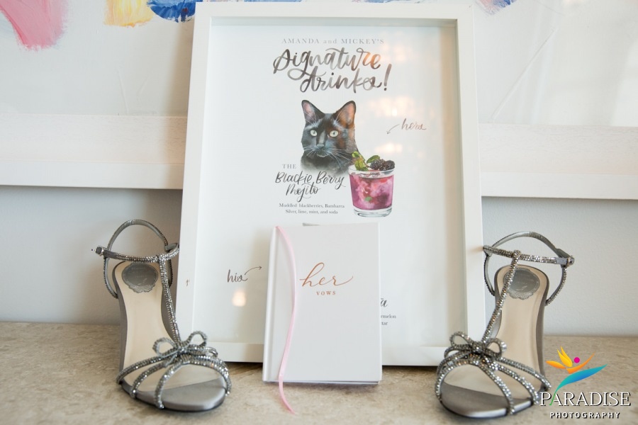 There was nothing lacking in details with this wedding. From the pink-sequined table cloths to the delicate florals, the bride’s fun sequined tennis shoes to the signature drinks honoring their cats back home (Blackieberry Mojito and Watermelon Marbarita for Blackie and Marble, respectively), this wedding was a dream.